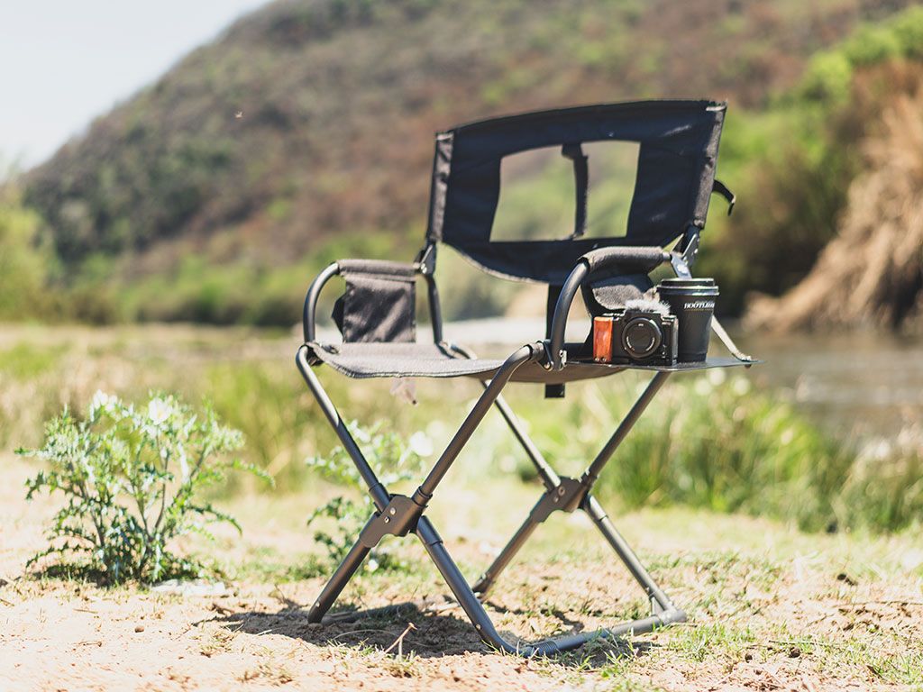 - بمجرد تأمين سطح الطاولة، يمكن طيه مع الكرسي ويمكن تخزينهما معًا في حقيبة تخزين كرسي التوسع .