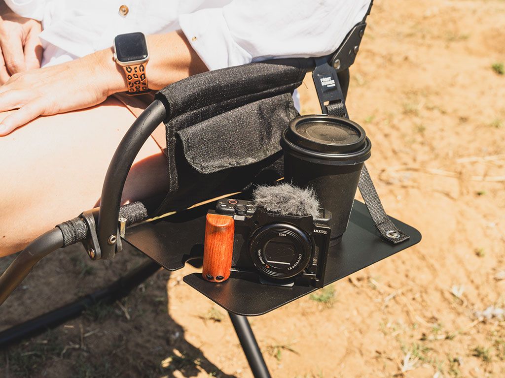 حسّن كرسي فرونت رانر المتوسع الخاص بك مع ملحق الطاولة القابل للطي هذا. مثالي للتخييم، والفعاليات الرياضية، والشاطئ، وأي أنشطة خارجية أخرى. تُثبّت الطاولة على الإطار، مما يُشكّل سطحًا متينًا وموثوقًا به على جانبي كرسي المتوسع، وهي مصنوعة من الألومنيوم المتين والفولاذ عالي القوة، مما يجعلها تتحمل حتى أصعب الظروف الخارجية.