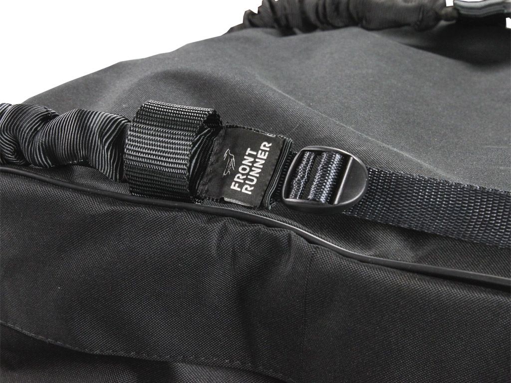 - 6 Triple-stitched tags for looping through Stratchits (or similar straps) and securing the bag to a Front Runner roof rack or other cargo carriers.
